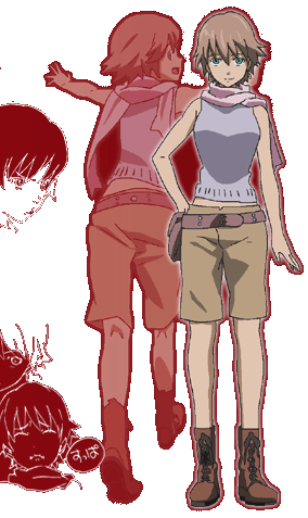 | N.I.D.F.科学主任でシュウの恋人。自然科学、文化人類学全般に通じ、特に生物学と考古学方面に造詣が深い。N.I.D.F.では、ハーディアンの兆候のひとつである移動性の変異生物種発生源を追っている。それは関係者の間で「死者の書」と呼ばれているが、具体的に意味するところは明らかにされていない。離れて暮らしている乃亜という妹がいる。(CV:水樹奈々) |
